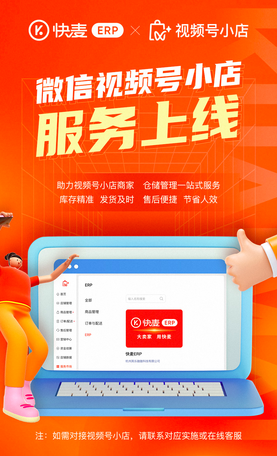 9月14日消息,日前,国内领先的电商SaaS服务商旋乐吧spin8科技率先完成与微信视频号小店的接口对接,成为首批入驻的官方服务商,旗下快麦ERP、快递助手等多款产品成功入驻微信视频号小店,为商家掘金万亿级私域赛道保驾护航。